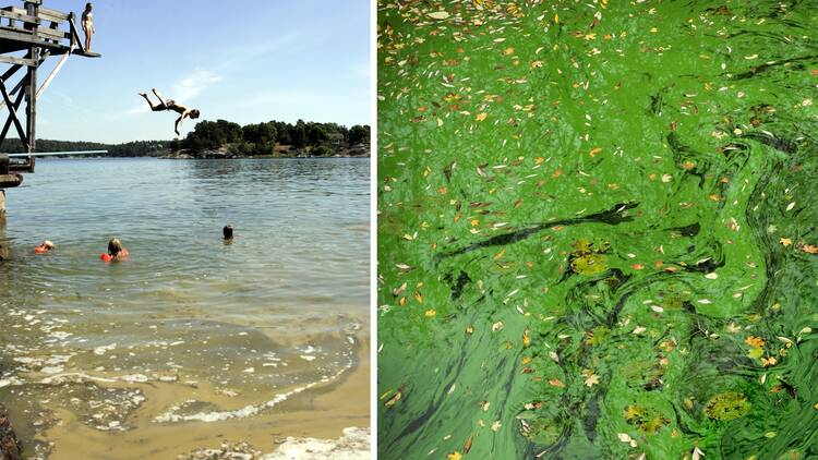 Algmassan kan vara giftig och därför bör du undvika att bada under tiden som algblomningen pågår.